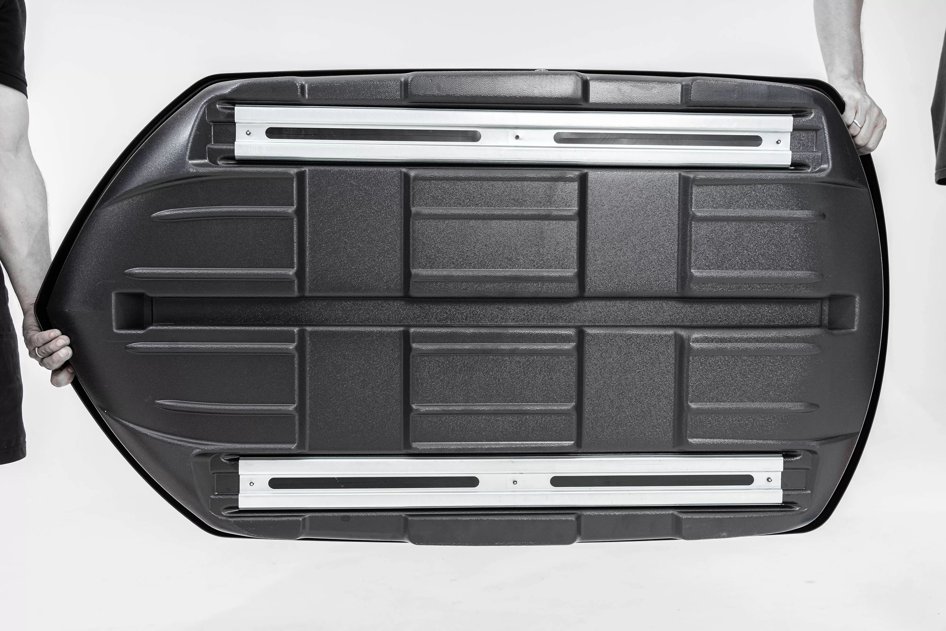 Дно бокса оснащено алюминиевыми усилителями; Толщина пластика бокса 3 мм. дополнительно можно приобрести крепления крабового типа |